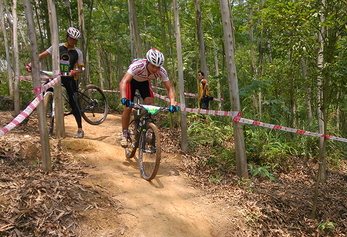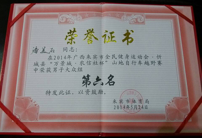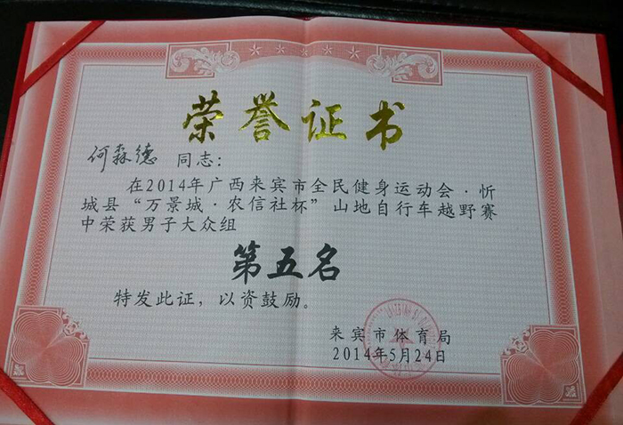 2014年5月24日“萬景城 農(nóng)信社杯”山地自行車越野賽,LAPLACE車隊(duì)的何森德和潘美石分獲5、6名。