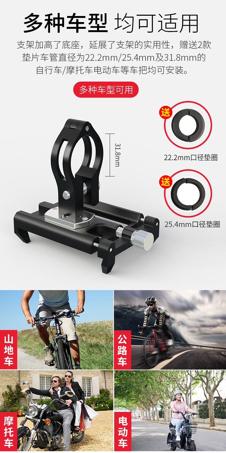 簡介:可簡單快捷安裝在車把或車頭,能讓您在外出騎行時輕松享受音樂,亦可導(dǎo)航為您指路,穩(wěn)定牢固,四爪扣更易固定手機。