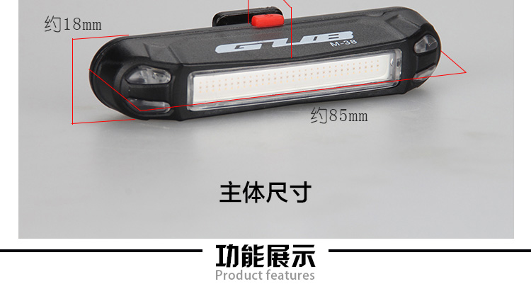特性:LED技術(shù),COB整面發(fā)光,高亮100流明設(shè)計,實現(xiàn)整體流暢設(shè)計;配備USB接口,可循環(huán)充電;2種模式7種效果可循環(huán)切換;電池自動保護功能,電壓低于2.8V不工作;硅膠捆扎固定方式,120度方位調(diào)整,方便拆卸安裝;方型背扣設(shè)計,可橫向和縱向不同角度安裝;可安裝在坐管,下叉,車把手,前叉等。