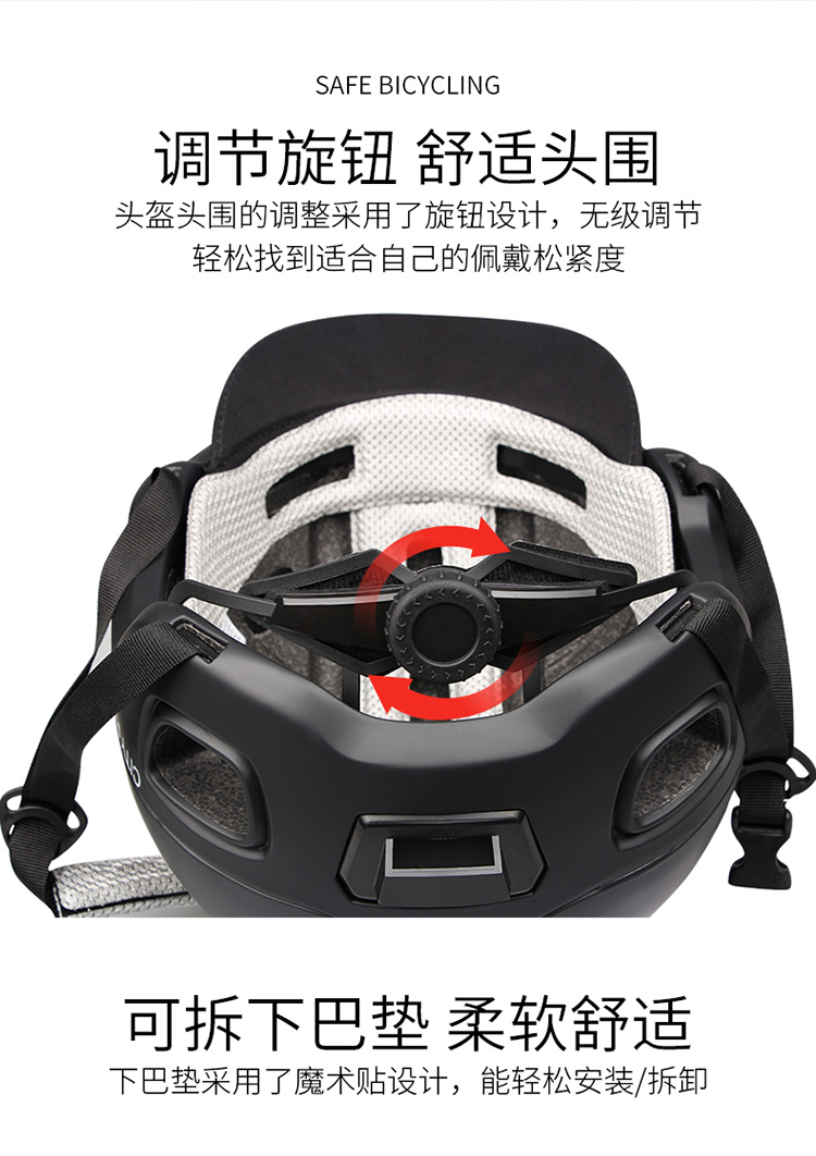 特色:簡潔大方的外觀設(shè)計(jì),融入聰明的設(shè)計(jì)更適合城市休閑騎行,個(gè)性可拆卸軟性帽檐,尾部帶警示燈安裝位,尾部加強(qiáng)透氣孔可鎖在車上減少拎取。