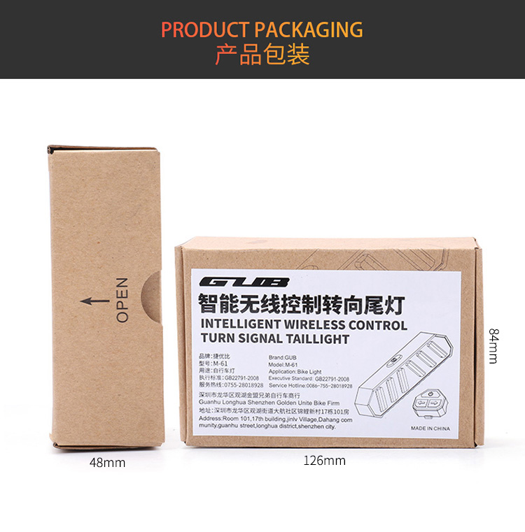 重量:約50克(尾燈)、約13克(遙控器)、約125克(總毛重)