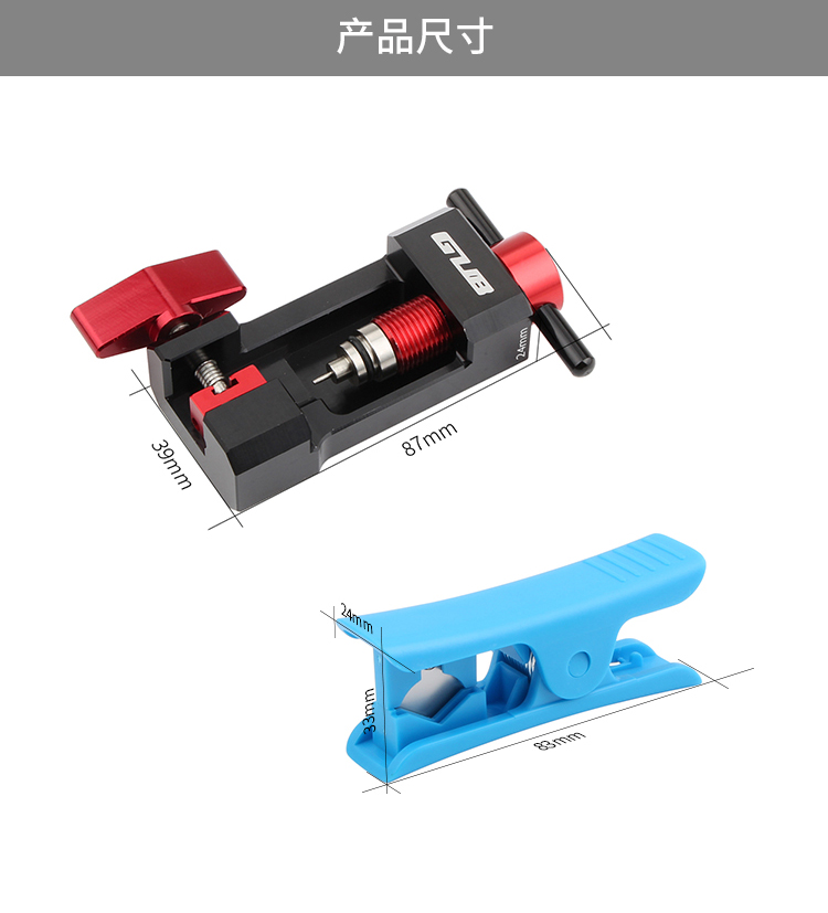 材質(zhì):全鋁合金臺(tái)+不銹鋼頂針(油針壓入工具),ABS工程塑料+不銹鋼刀片(油管切割器)