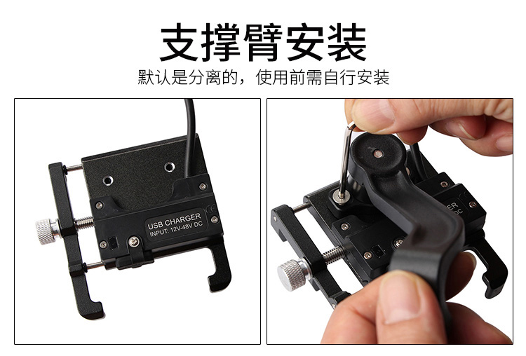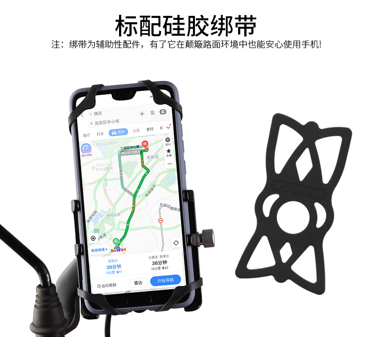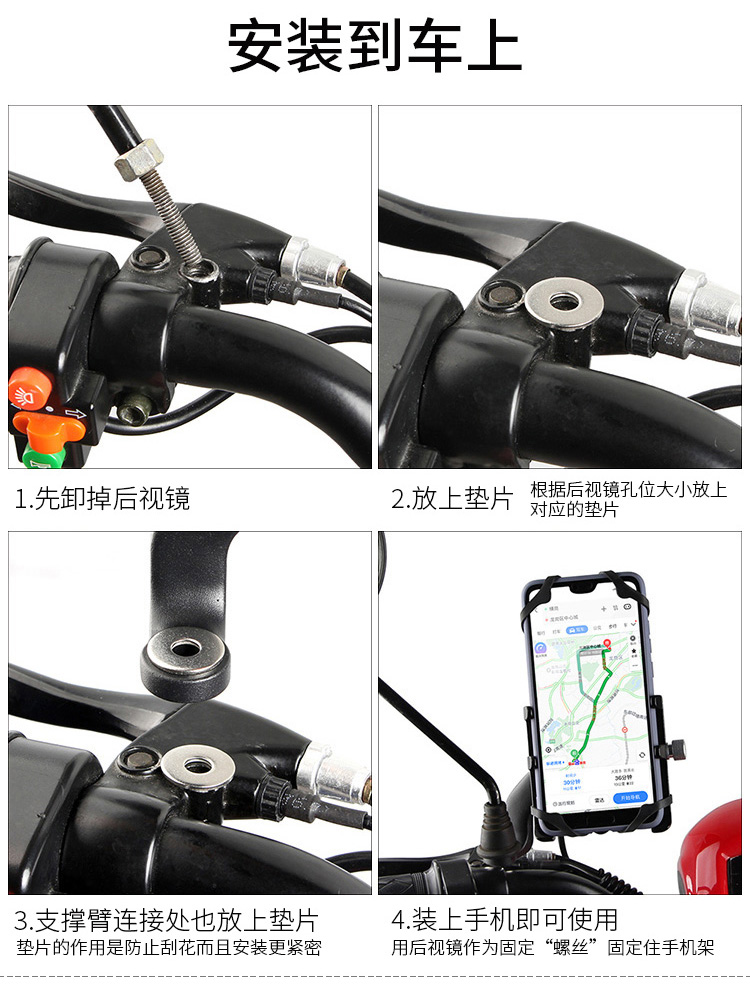特點:全鋁合金架體,四對位加長固定部+強化底托,加粗支撐臂,支持360度旋轉,更標配穩(wěn)固綁帶,連接電瓶后可為手機充電,摩托車/電動車等都可使用!