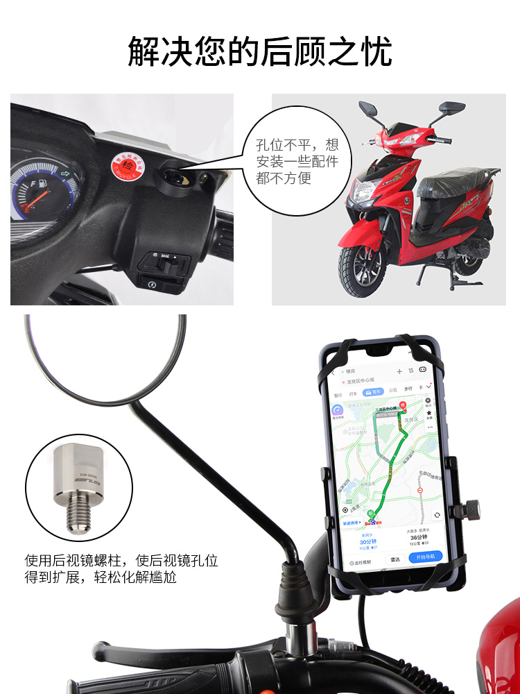 簡介:此配件為后視鏡輔助配件,采用不銹鋼材質(zhì),耐用不生銹,用于摩托車/電動車后視鏡孔位的擴(kuò)展,起到墊高或更好適配的作用。