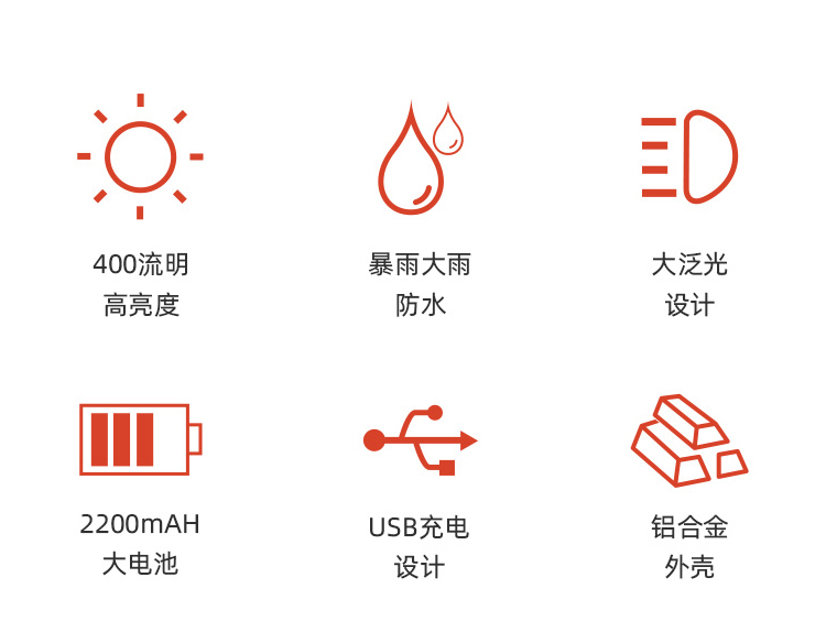 燈光模式:低亮/中亮/高亮/閃亮/SOS