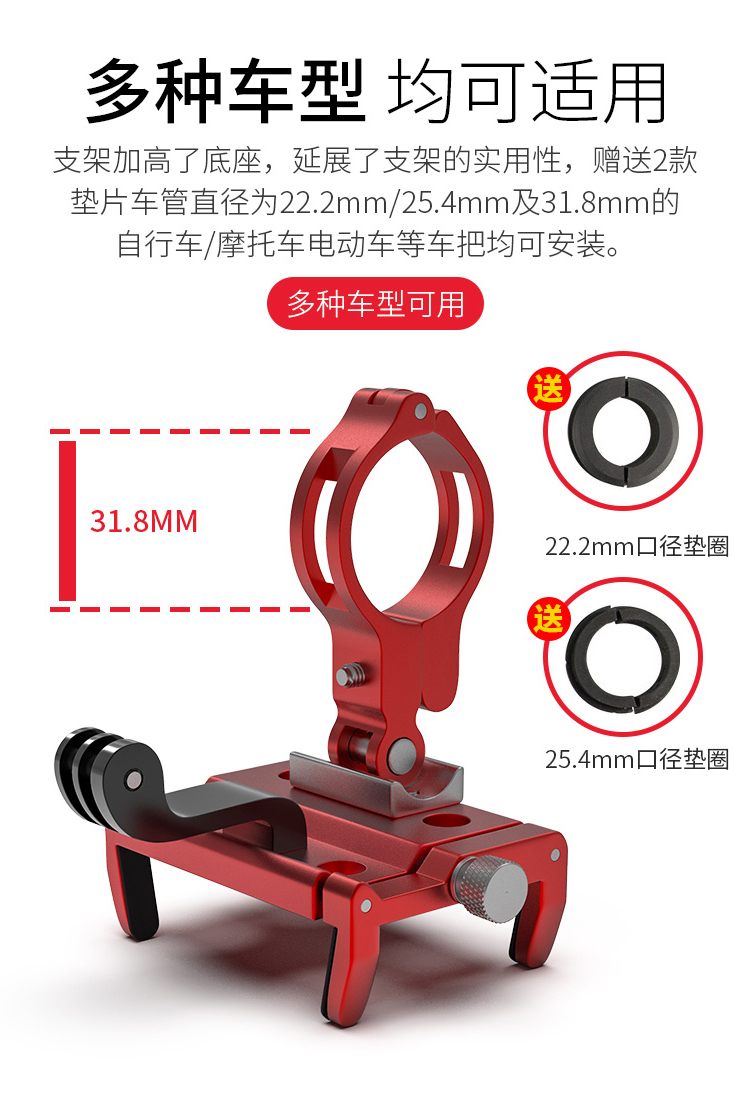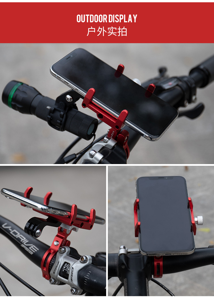 特點(diǎn):鋁合金架體,高兼容性不挑手機(jī)型號(hào),自行車、電動(dòng)車等都可使用。標(biāo)配電筒支架配件,豐富擴(kuò)展性能,讓你騎行無(wú)憂!
