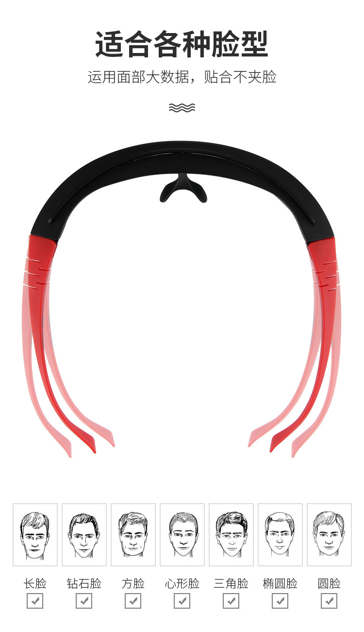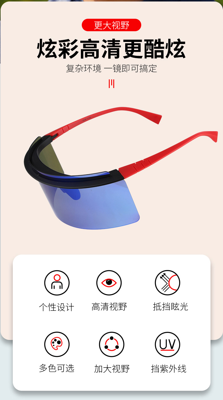 顏色:黑砂紅/紅鏡片、黑砂紅/白冰藍(lán)鏡片、黑砂紅/粉紫鏡片、黑砂紅/綠鏡片
