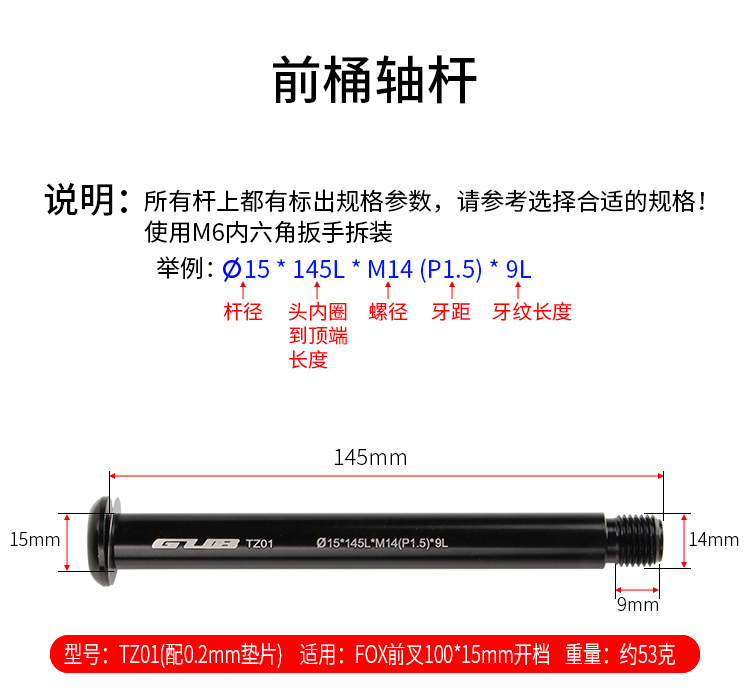 說明:請根據(jù)前叉和車架尺寸選擇合適的桶軸桿!