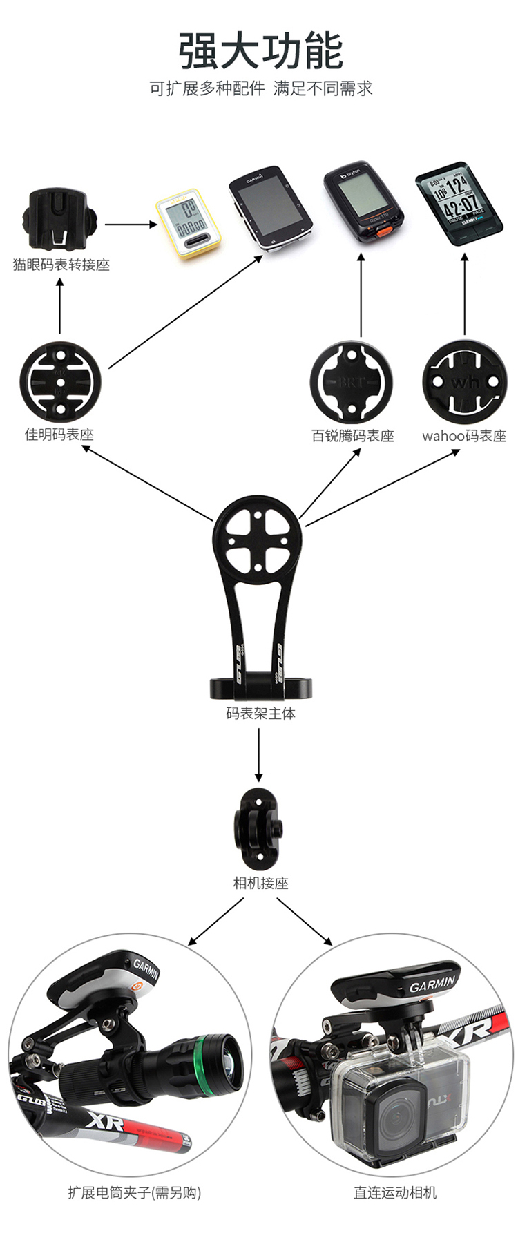 配置:配運(yùn)動(dòng)相機(jī)轉(zhuǎn)接座,wahoo、佳明、百銳騰和貓眼碼表接座