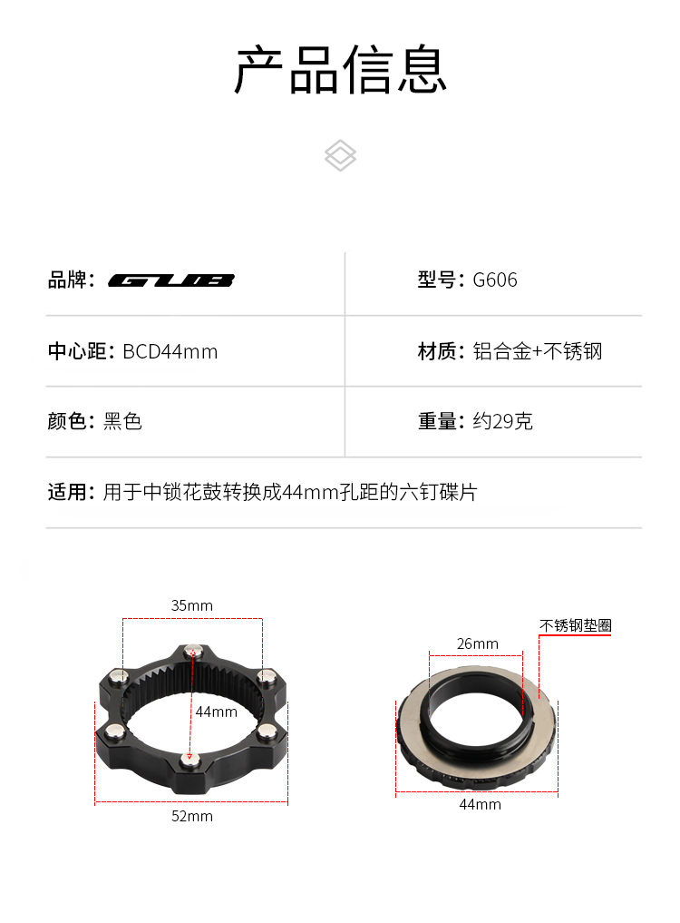 適用于:用于中鎖花鼓轉(zhuǎn)換成44mm孔距的六釘?shù)?/span>