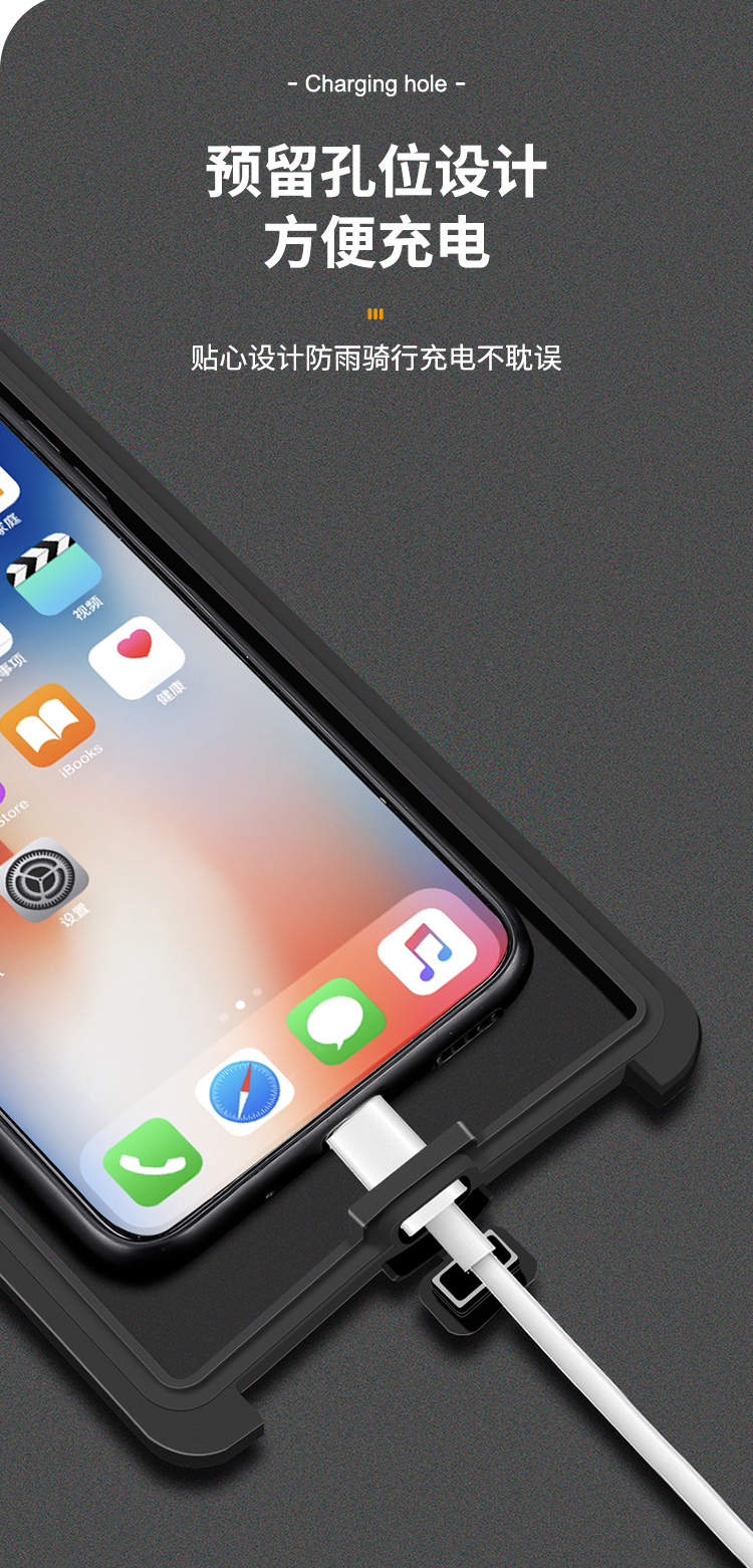 特點(diǎn):鋁合金支撐架,全封閉手機(jī)盒,防雨無憂,高兼容性不挑手機(jī)型號,摩托車、電動車等都可使用,滿足多場景使用需求。