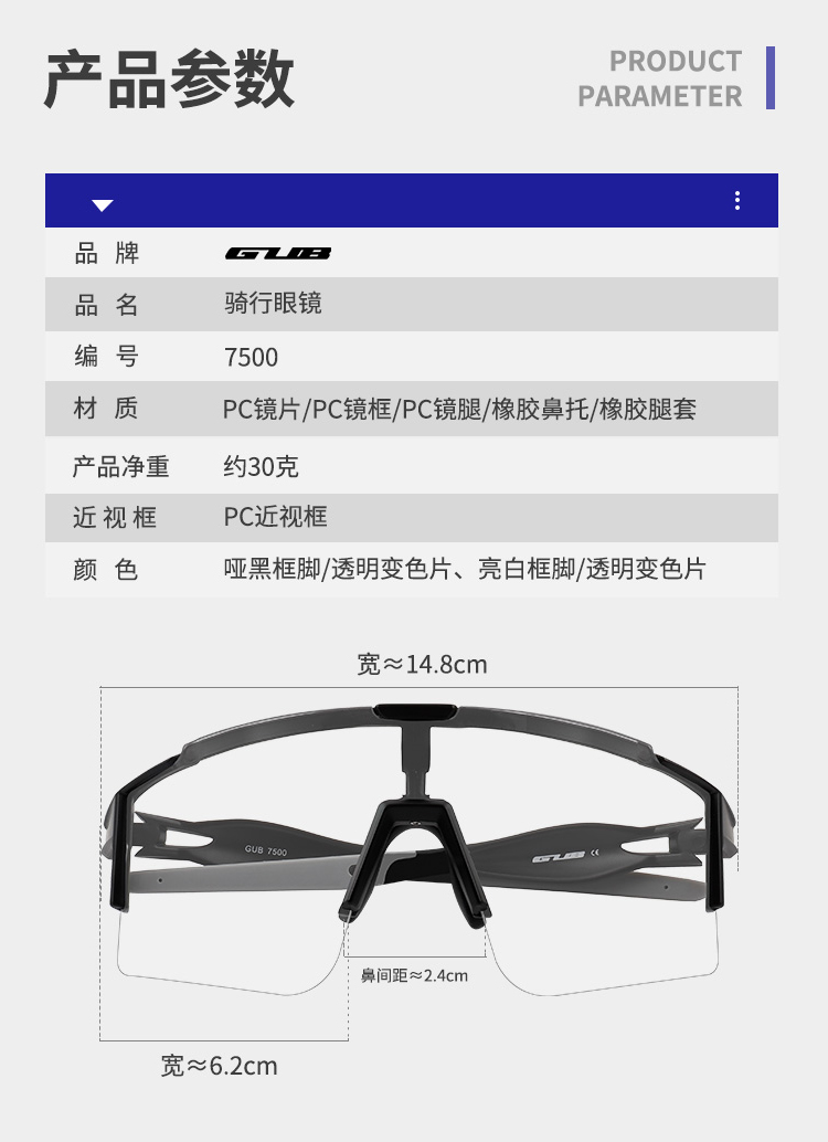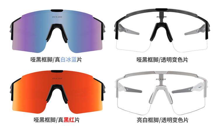 顏色:啞黑框腳/真白冰藍片、啞黑框腳/真黑紅片、啞黑框腳/透明變色片、亮白框腳/透明變色片