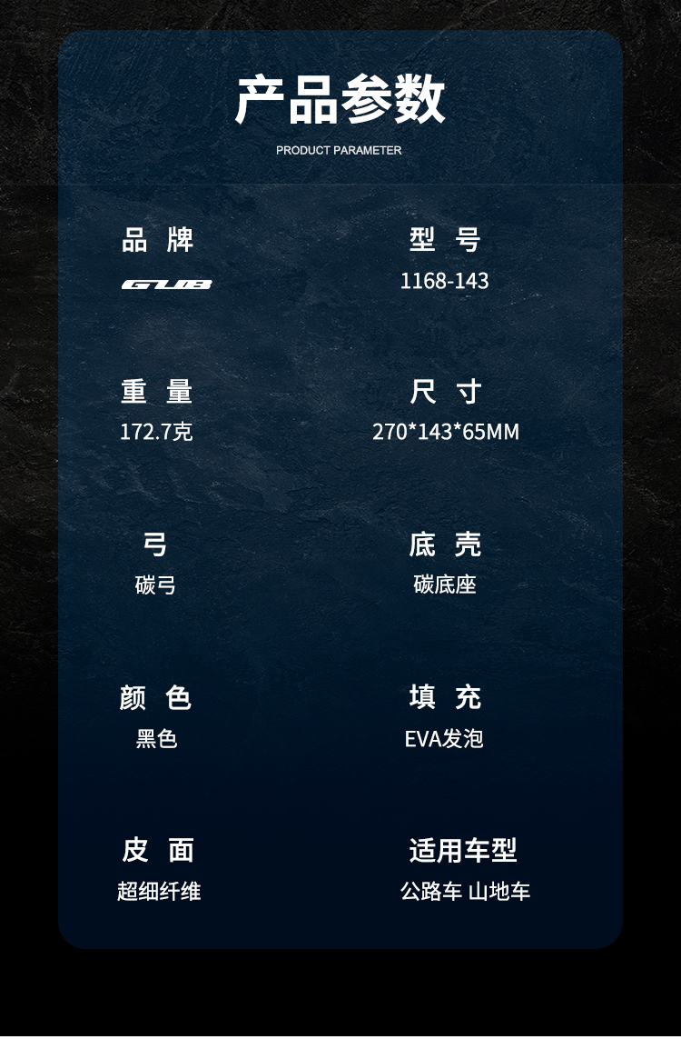 產(chǎn)品:GUB 1168-143 碳纖維座墊