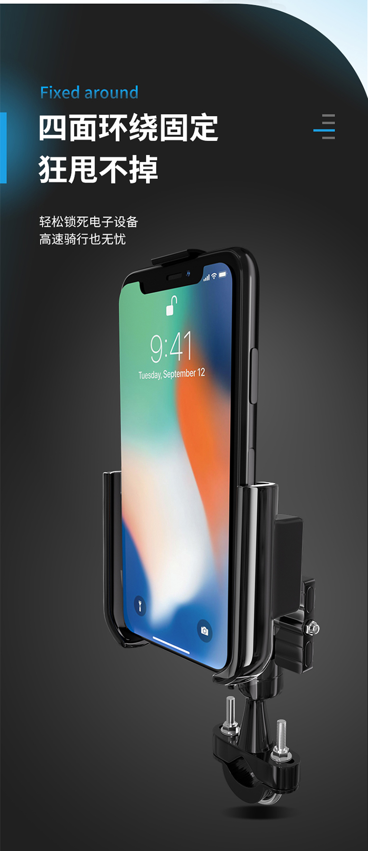 特點(diǎn):鋁合金架體,U型夾更加堅(jiān)固穩(wěn)定,適用性更廣,高兼容性不挑手機(jī)型號,摩托車、電動(dòng)車等都可使用,四面環(huán)繞固定,夾手機(jī)更牢固,快速取放省時(shí)省力,雙萬向球旋轉(zhuǎn)系統(tǒng),滿足多場景使用需求。