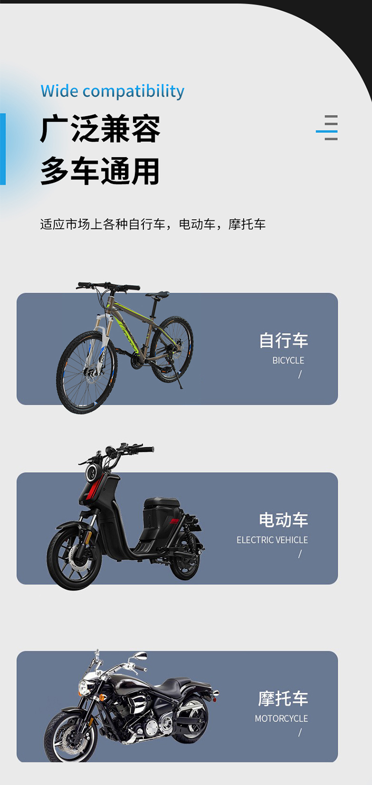 適用:摩托車/電動(dòng)車/自行車等