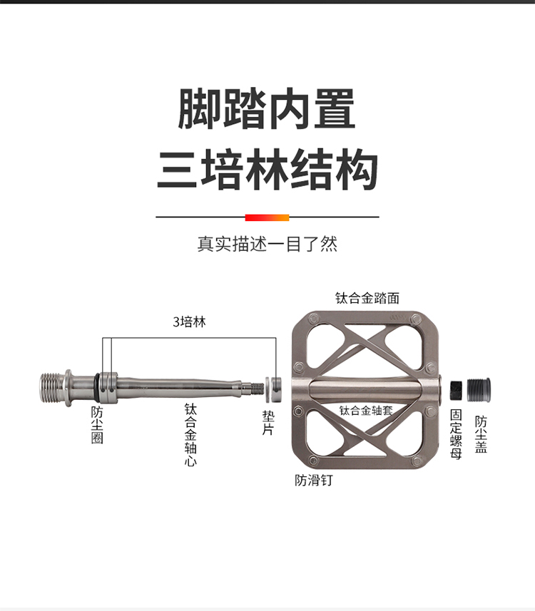 材質(zhì):鈦合金踏板+鈦合金軸套+鈦合金軸心
