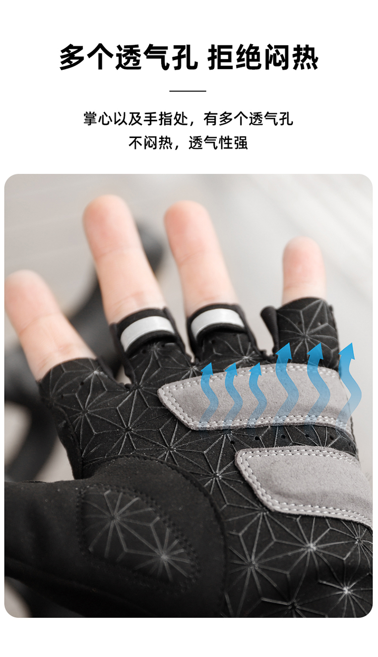特點(diǎn):簡約設(shè)計(jì)、貼合手掌,手背高彈透氣面料,手掌大面積硅膠印刷條紋,防滑效果好