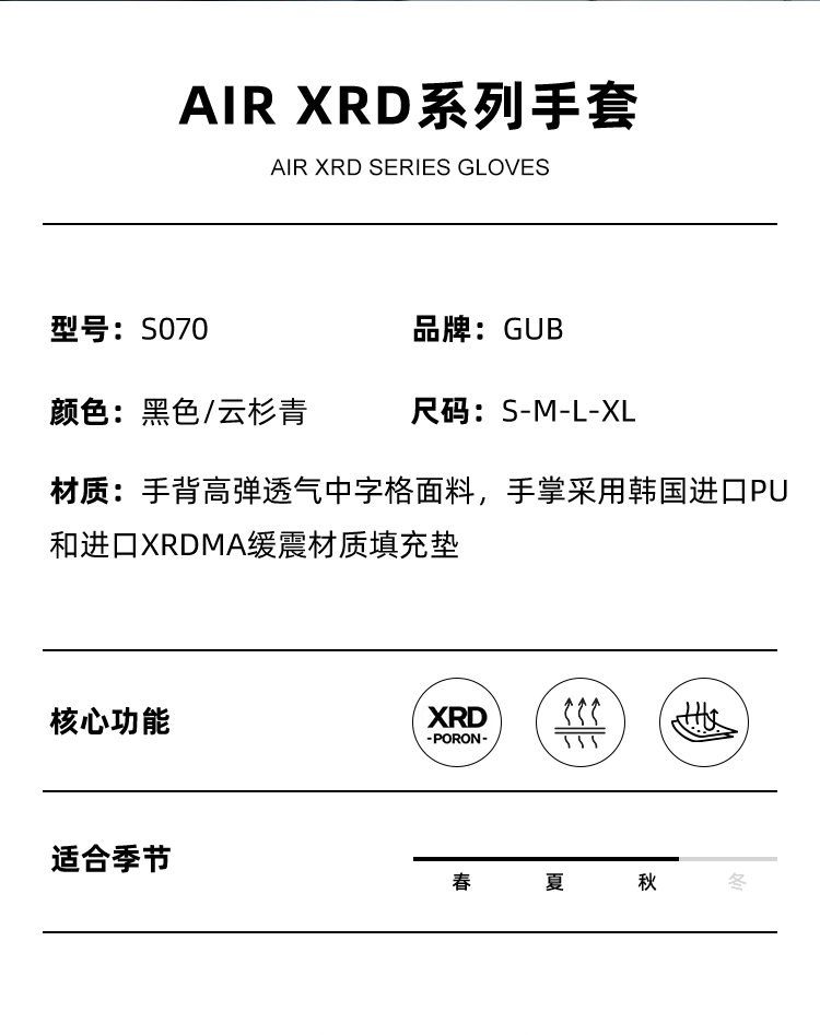 材質(zhì):手背高彈透氣中字格面料,手掌采用韓國進(jìn)口PU和進(jìn)口XRDMA緩震材質(zhì)填充墊