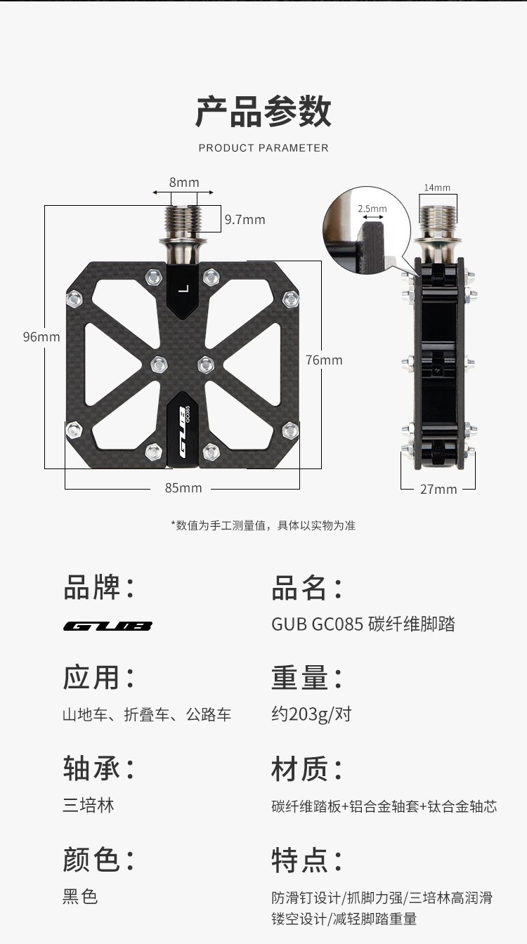 產(chǎn)品:GUB GC085 碳纖維三培林腳踏
