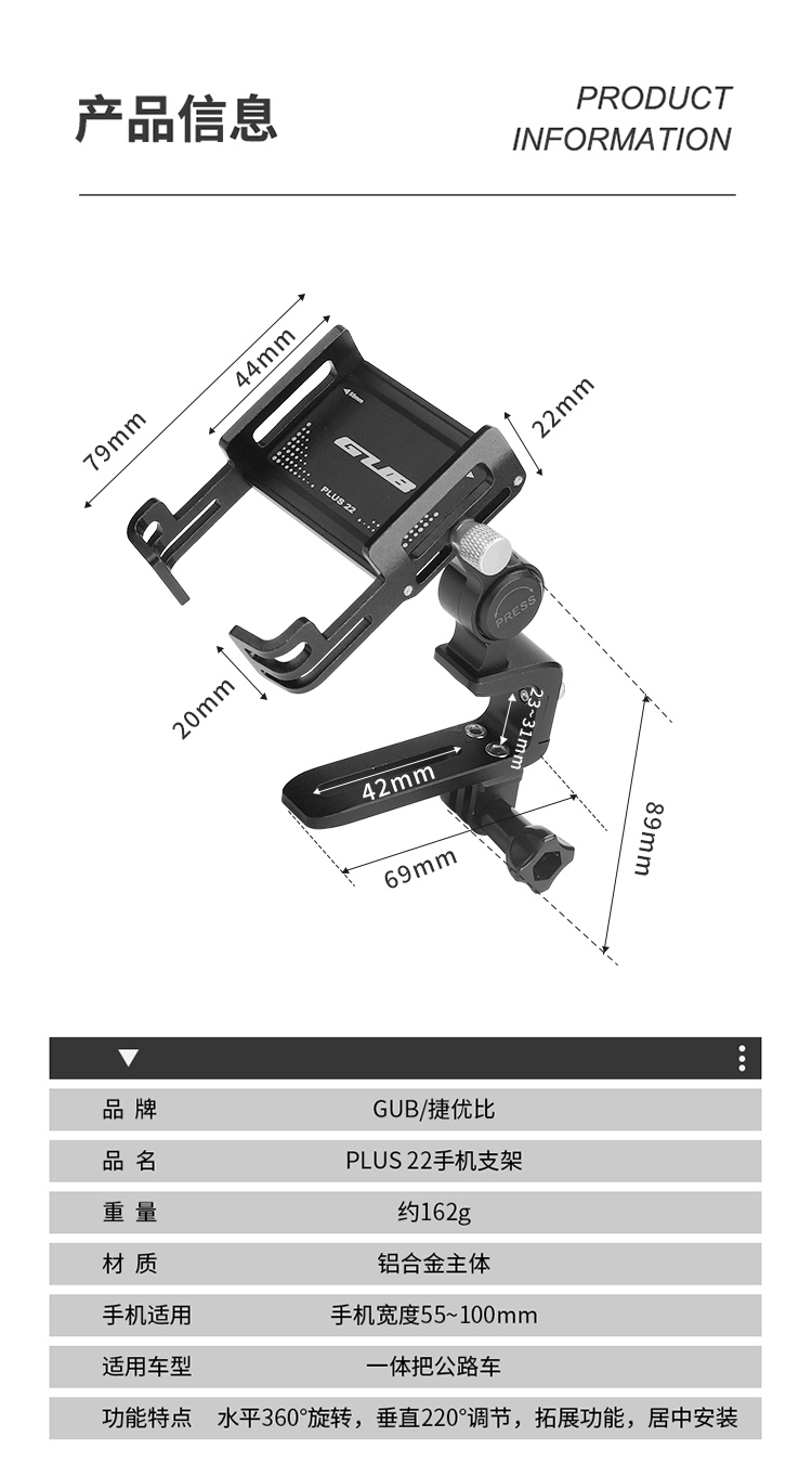 名稱:GUB PLUS 22 多功能一體把專用手機支架