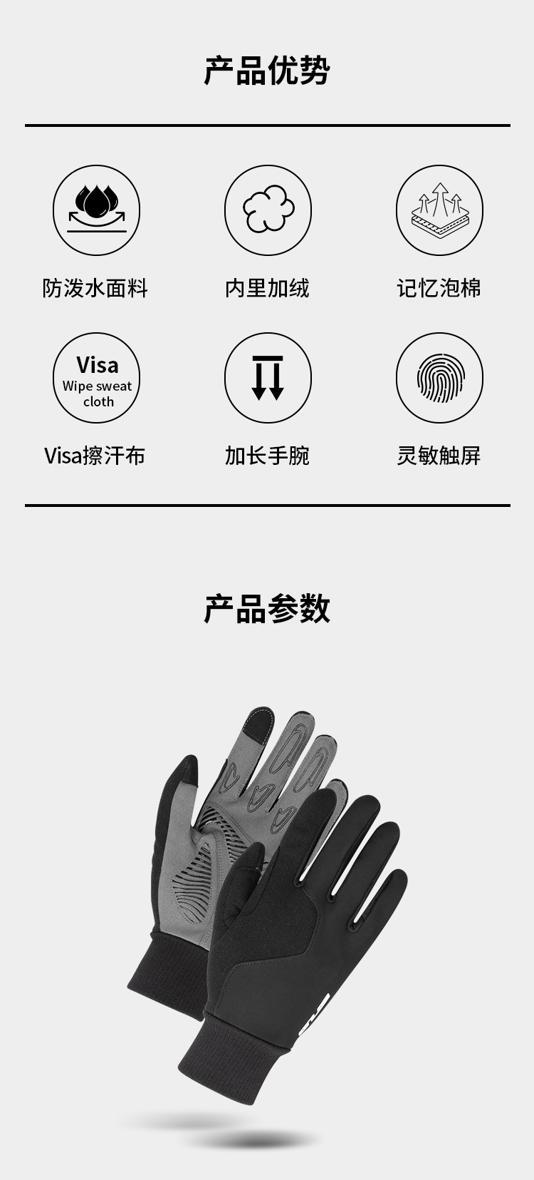 特點:內(nèi)里加絨,抵御寒風,柔軟舒適,3D立體裁剪,防滑耐磨,支持觸屏
