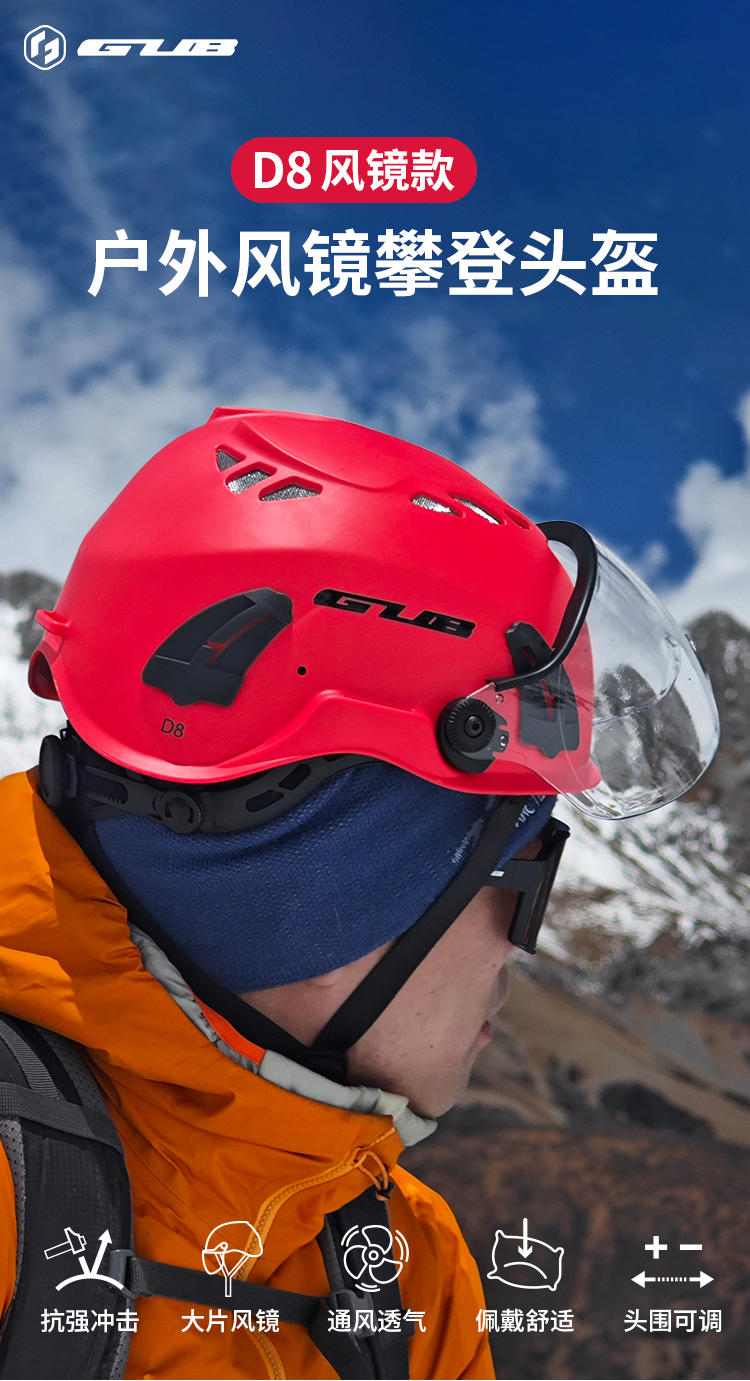 產(chǎn)品:GUB D8 風(fēng)鏡款登山攀巖頭盔