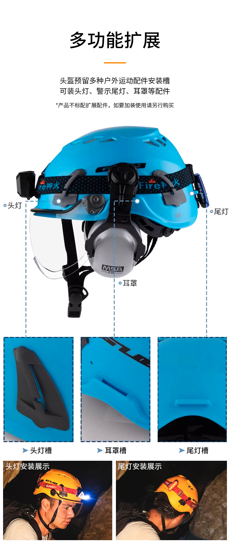 特色:簡約大方的外觀設(shè)計(jì),升級可拆卸風(fēng)鏡,PP+EPS高強(qiáng)度外殼不懼強(qiáng)烈沖擊,貼心半包邊內(nèi)襯佩帶舒適,自帶頭燈卡扣,支持加裝頭燈。帶耳罩插口,可加裝防噪耳罩。