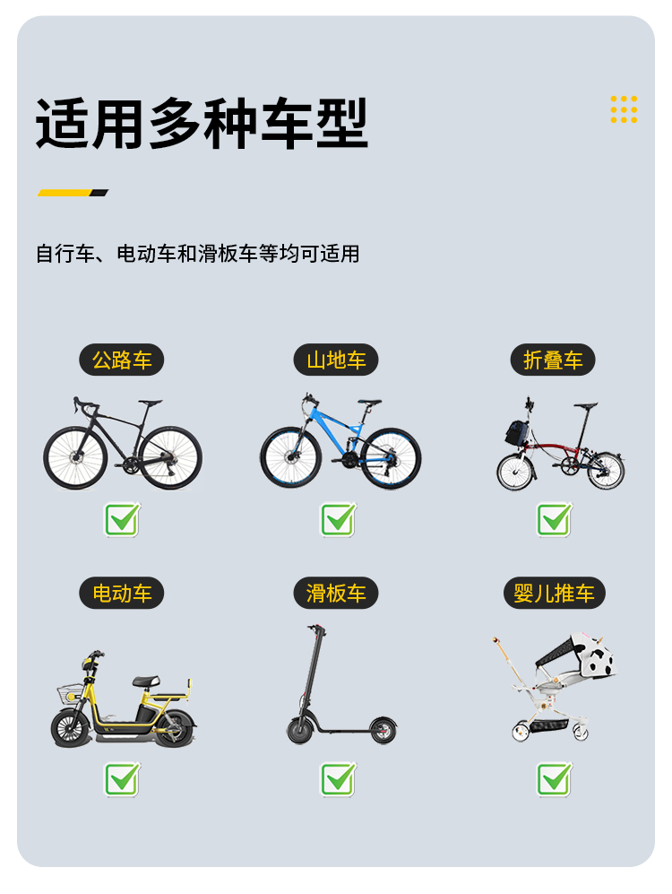 適用:自行車/電動(dòng)車/滑板車/折疊車等