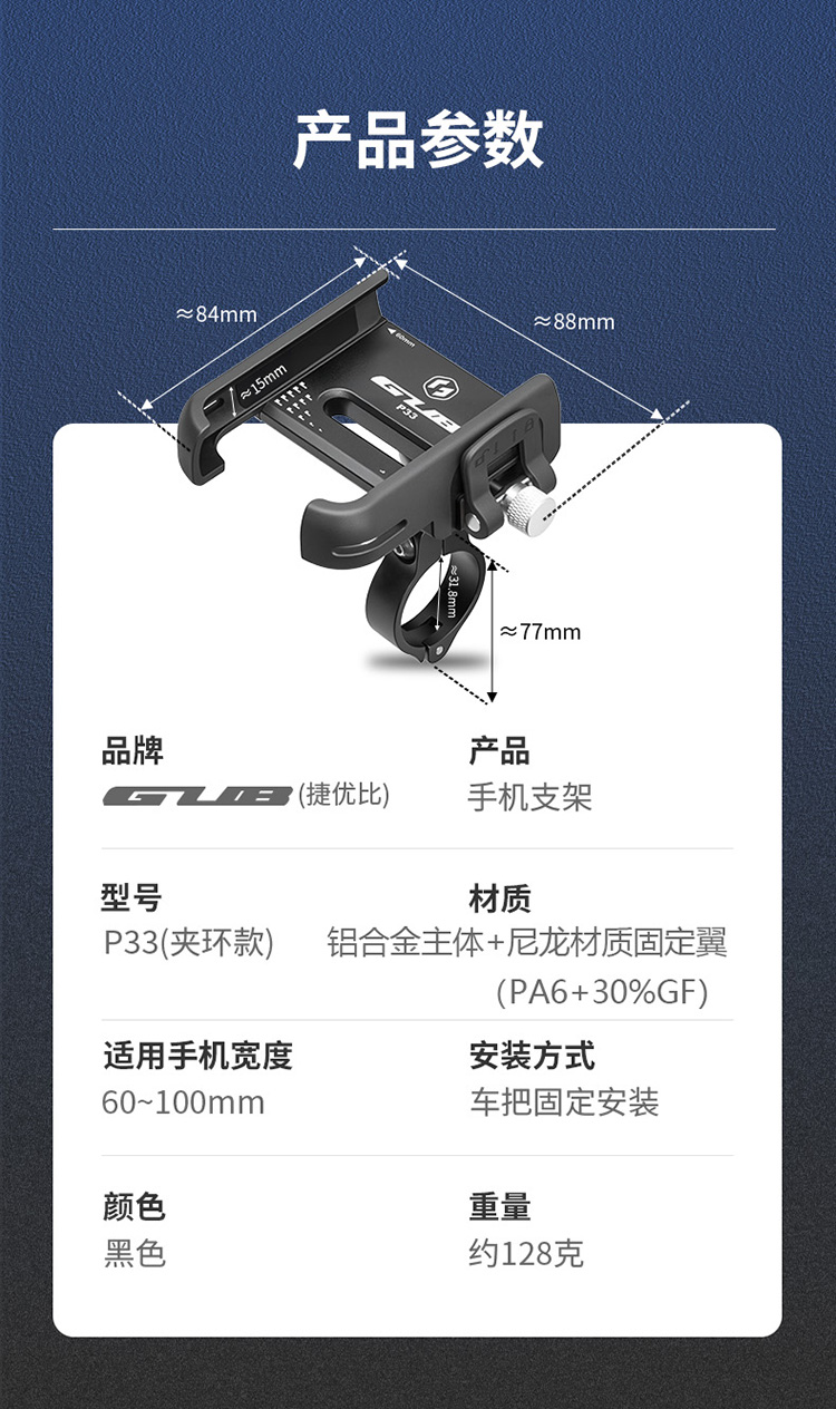 名稱:GUB P33 快拆式手機(jī)支架(夾環(huán)款)