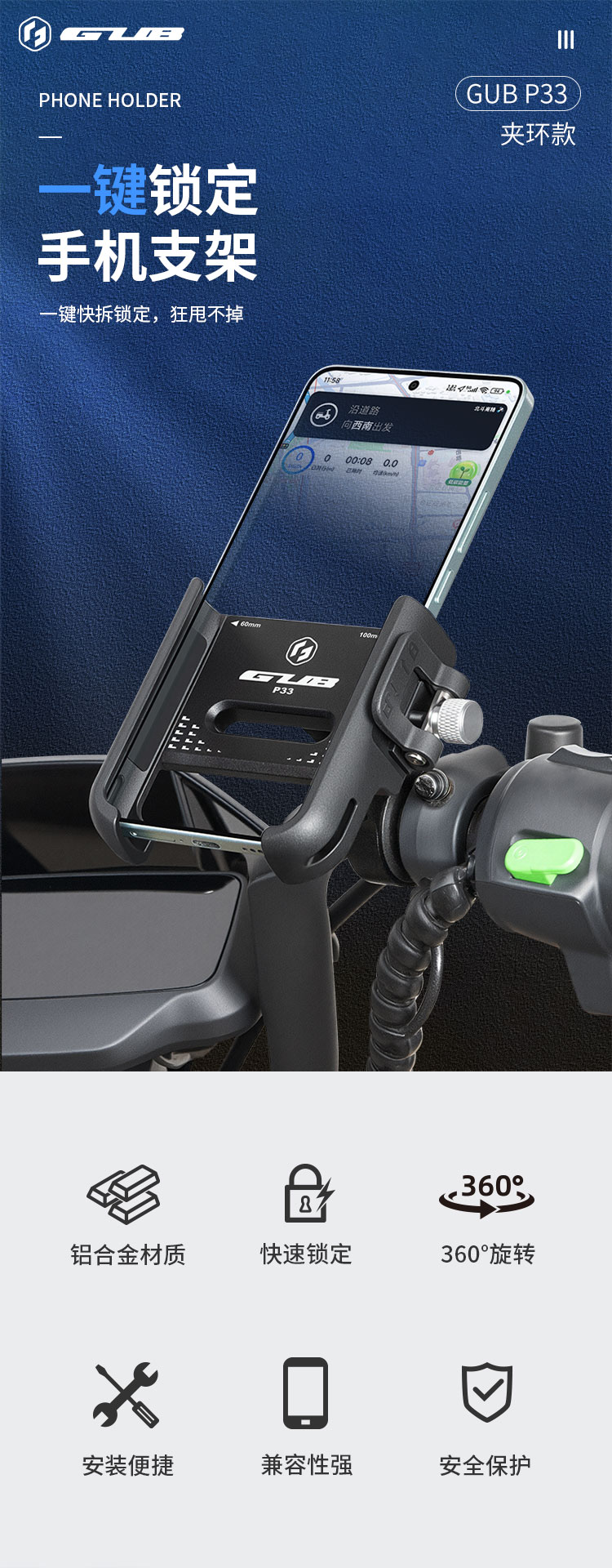 GUB P33 快拆式手機(jī)支架(夾環(huán)款)