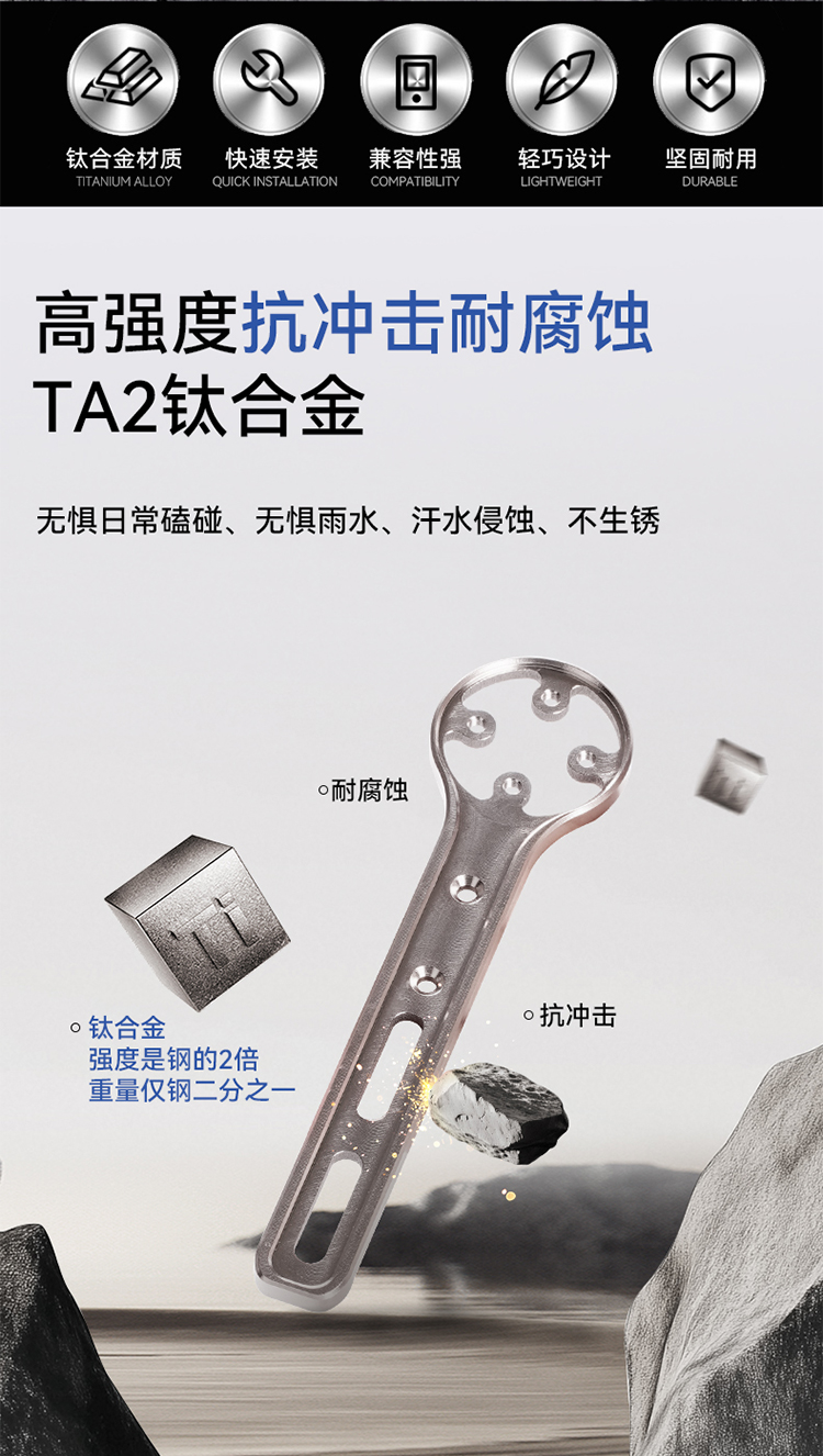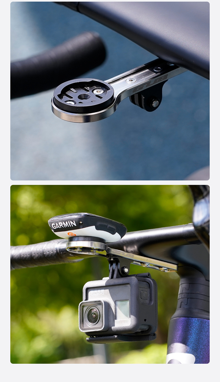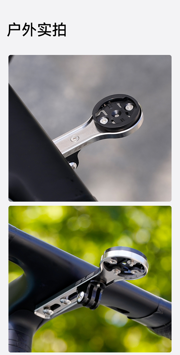特點:鈦合金超輕架體,居中安裝節(jié)省空間(一體把專用),兼容多種碼表,標(biāo)配運動相機轉(zhuǎn)接座,可擴展使用運動相機等配件