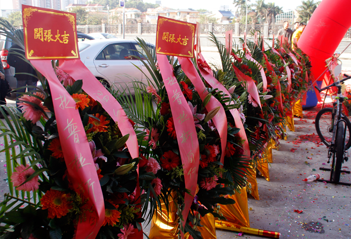 現(xiàn)場(chǎng)擺滿了各位合作伙伴以及嘉賓送來(lái)的花籃