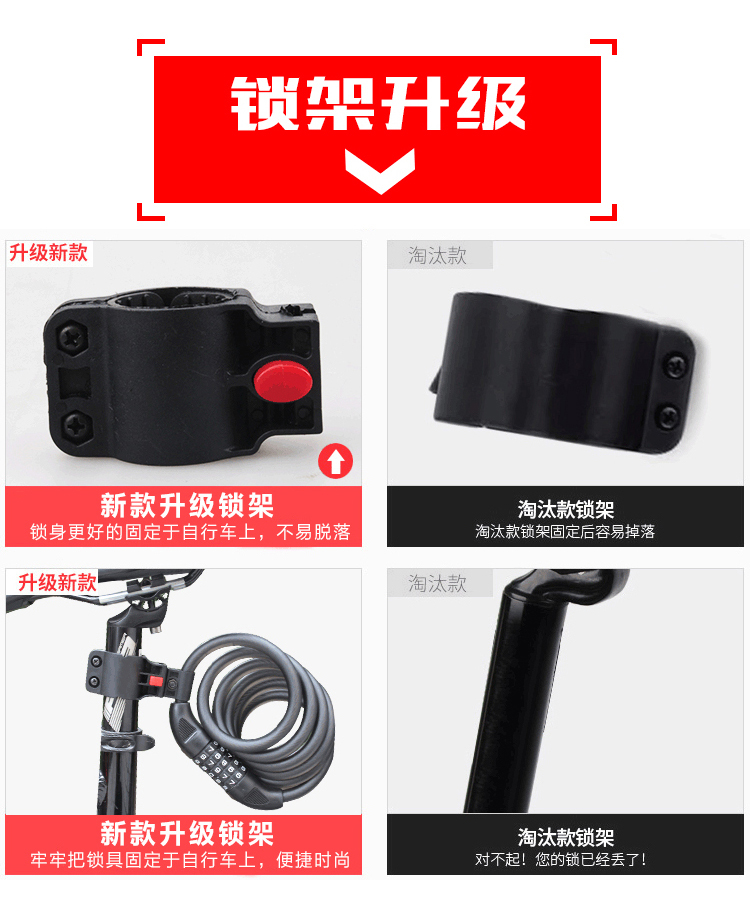 特色:五位數(shù)密碼鎖,時(shí)尚便捷免鑰匙,1.2米合金鋼纜想怎么鎖就怎么鎖,鋁合金鎖芯更牢固,帶鎖架方便使用