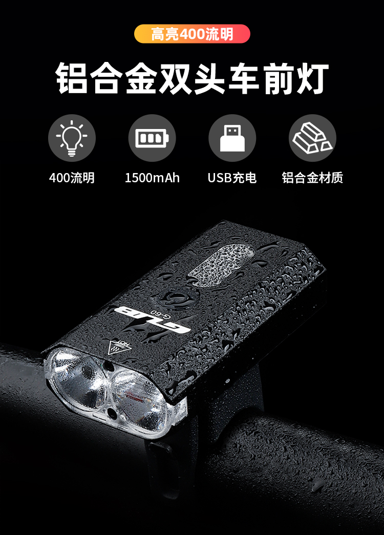 名稱:GUB G-60 雙頭自行車前燈