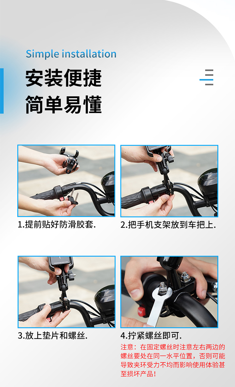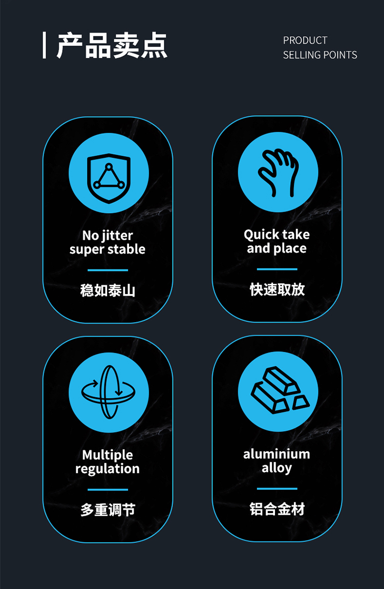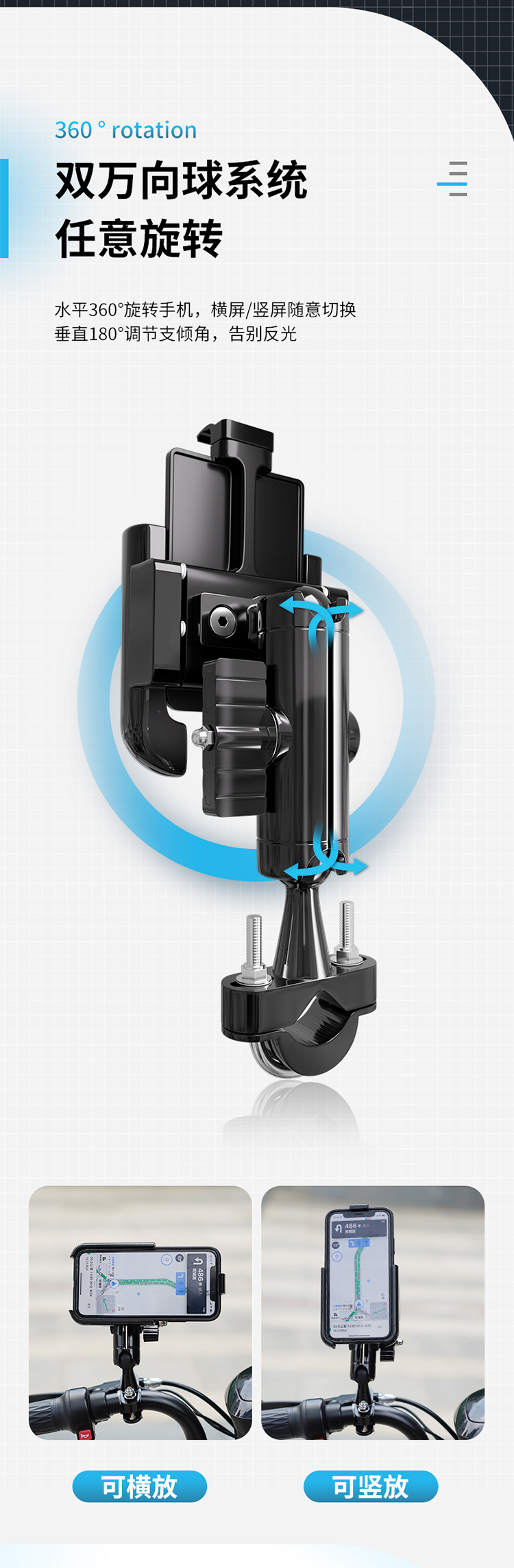 特點(diǎn):鋁合金架體,U型夾更加堅(jiān)固穩(wěn)定,適用性更廣,高兼容性不挑手機(jī)型號,摩托車、電動(dòng)車等都可使用,四面環(huán)繞固定,夾手機(jī)更牢固,快速取放省時(shí)省力,雙萬向球旋轉(zhuǎn)系統(tǒng),滿足多場景使用需求。