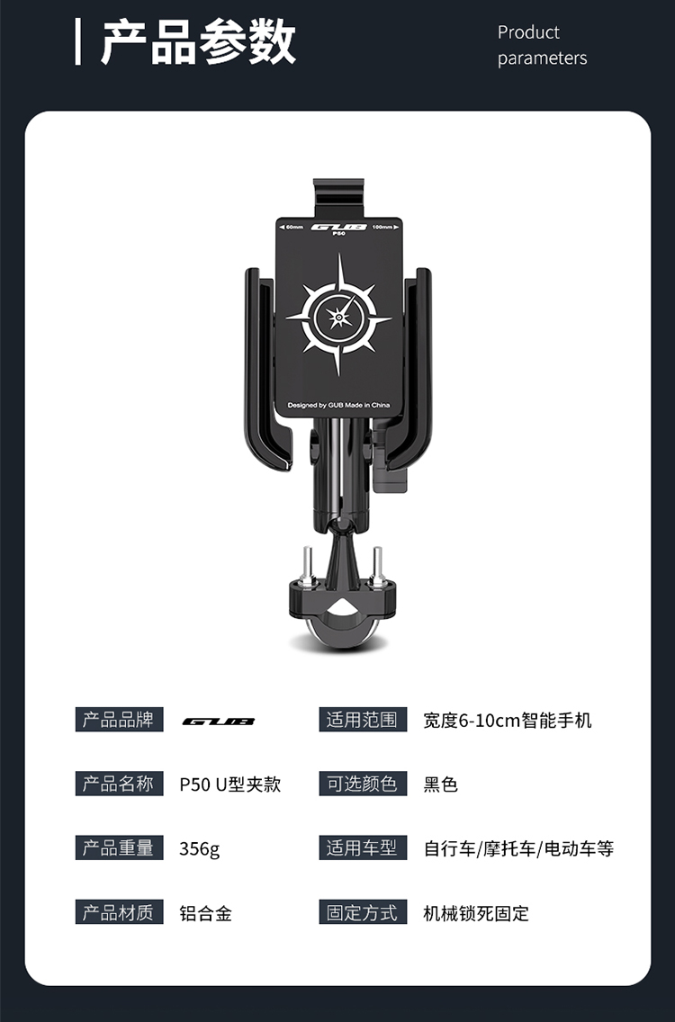 名稱:GUB P50 鋁合金手機(jī)支架(U型夾款)