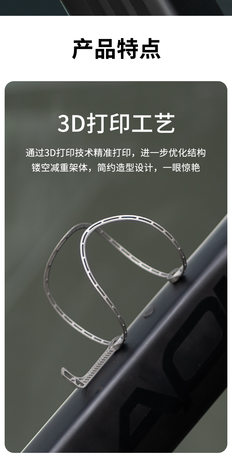 特點(diǎn):3D打印工藝,鈦合金鏤空架體,耐磨耐腐蝕,超輕僅重8.5克