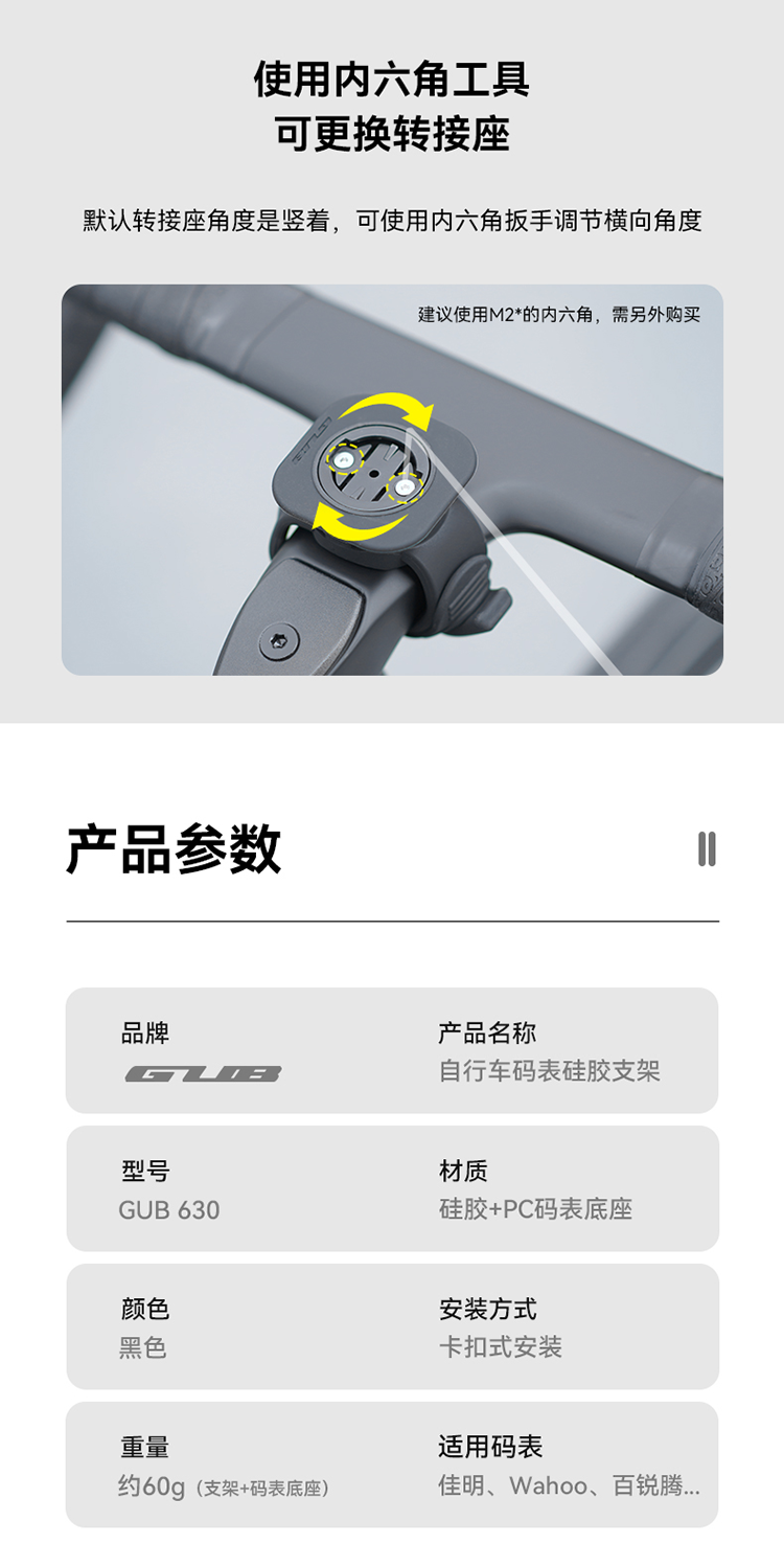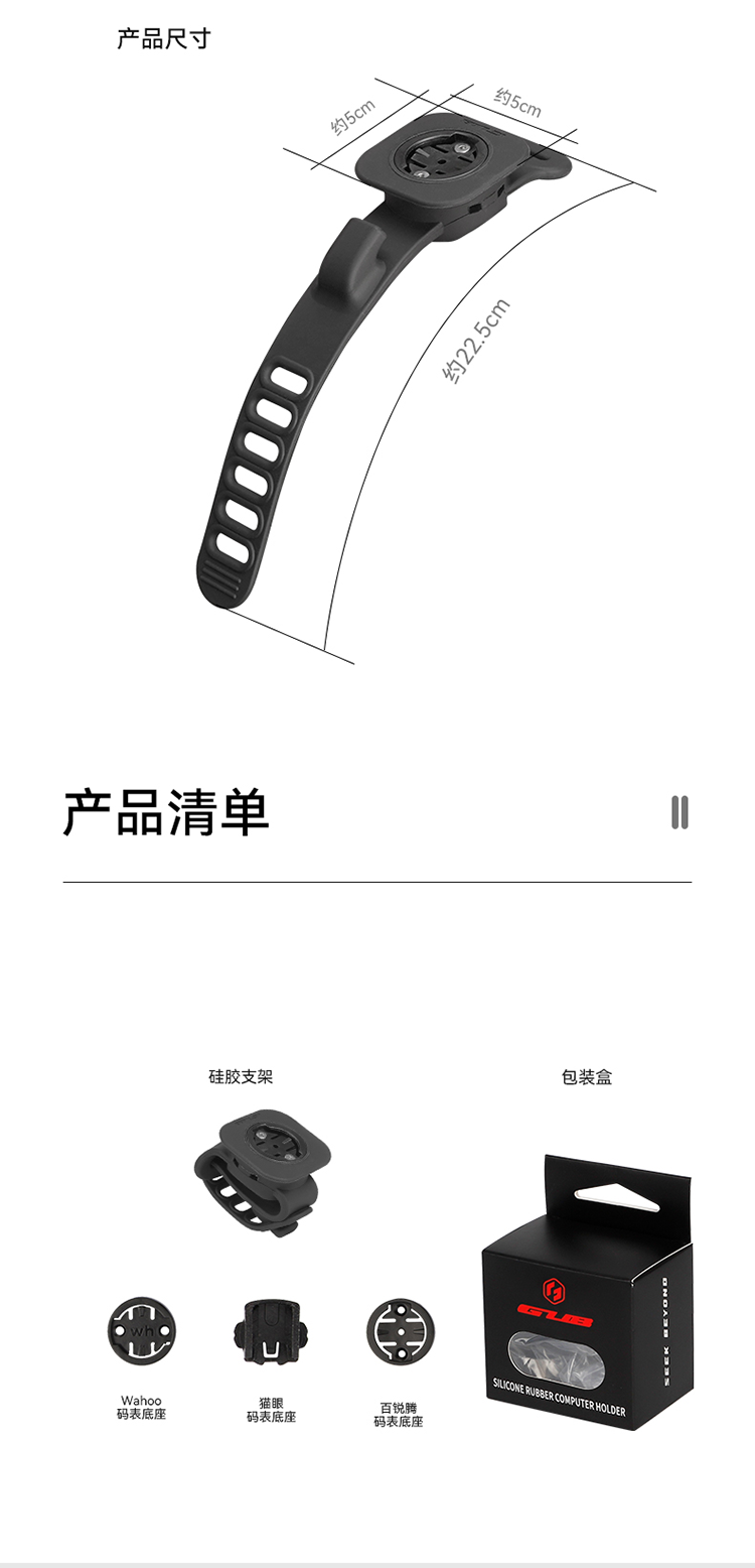 特點(diǎn):硅膠架體,不傷車把,安裝方便,兼容多種碼表