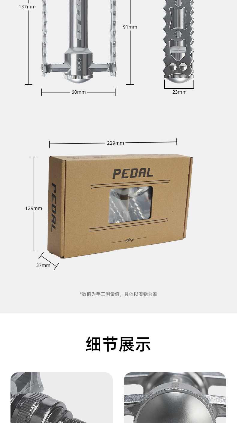 重量:雙快拆凈重約380克/對,毛重約456克 ;左快拆右螺紋腳踏凈重約340克/對,毛重約438克